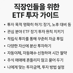 ETF는 투자 입문자에게 가장 안전하고 효율적인 방법입니다. 특히 직장인은 정보, 시간, 리스크 관리에서 제약이 크기 때문에 ETF로 시작하는 것이 가장 현명합니다.
